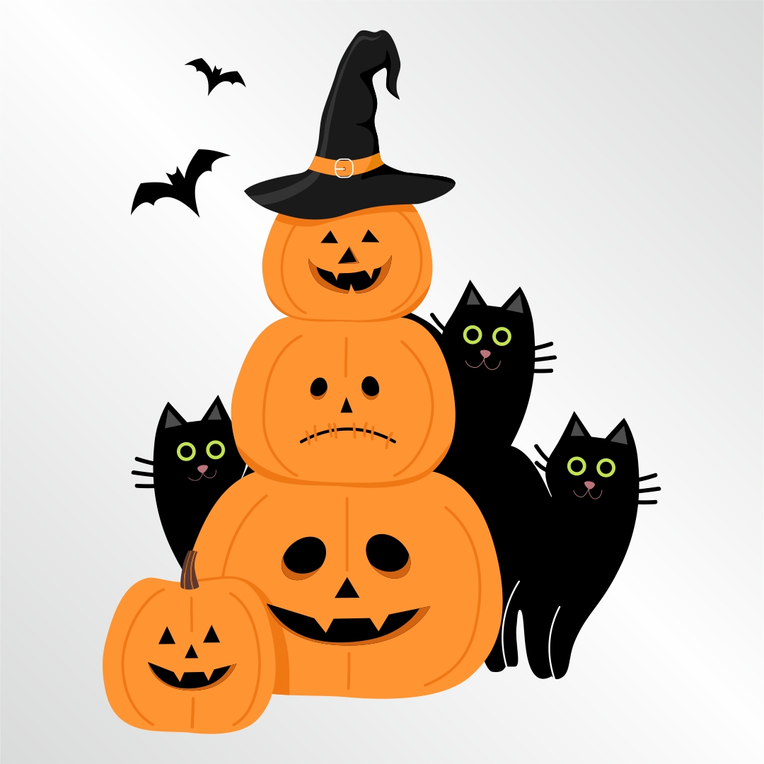 Halloween Βιτρίνα Pumpkins Bats And Black Cats
